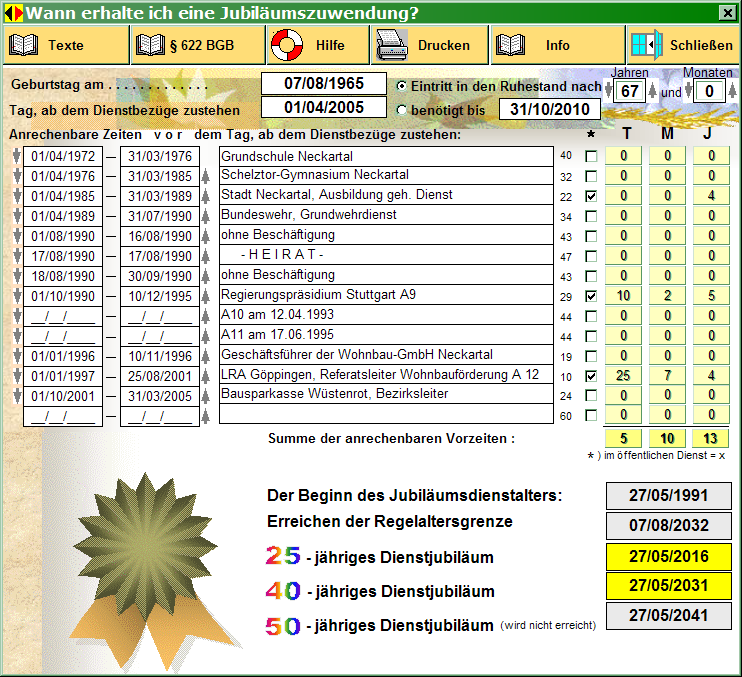 1. Screenshot mit Option "Eintritt in den Ruhestand"