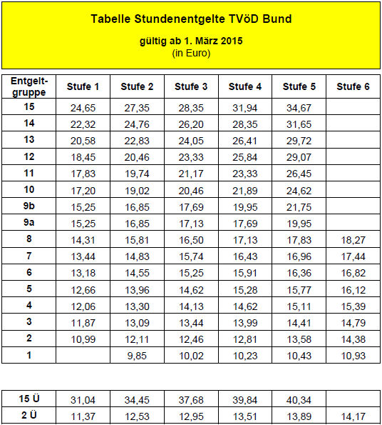 Lineare Erhöhung um 2,4 % (Ergebnis der Tarifeinigung 2014)