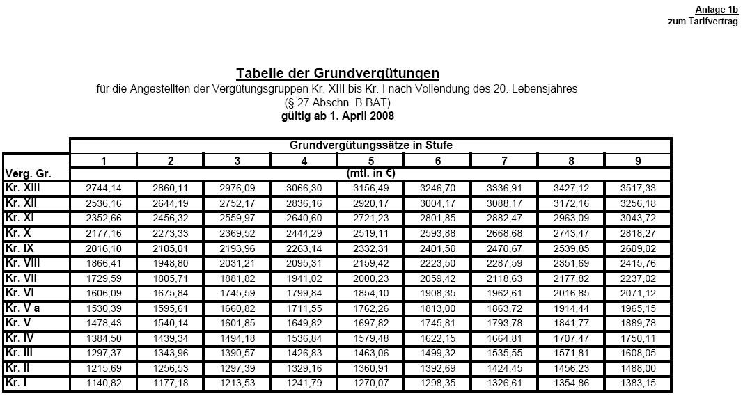 Hessen: Tarifvertrag Einkommensverbesserungen 2008