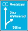 Erläuterung jedoch nur mit Entfernungsangabe auf einem Zusatzzeichen und bei Bedarf mit Zielangabe auf einem zusätzlichen Schild über dem Zeichen. |